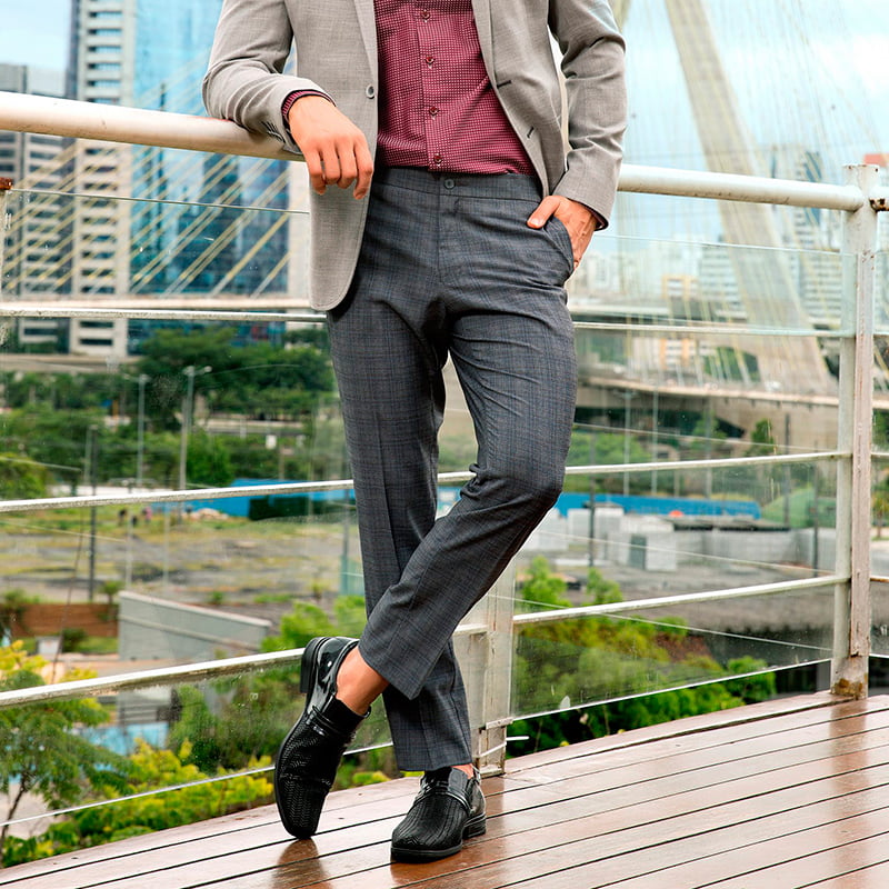 Calça alfaiataria sem duvida. Portanto, mesmo sendo ela slim, larga, ou qualquer modelagem, ela tem que ser social e de um tecido plano.